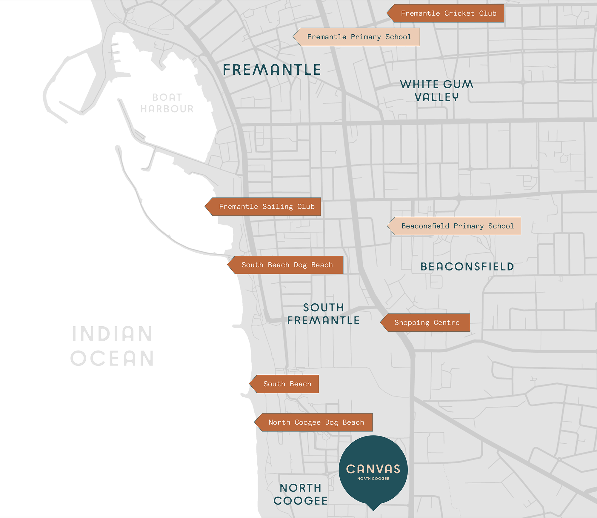 Part of the 47-hectare Cockburn Coast Redevelopment Area, CANVAS sits within a broader vision to transform former industrial land into a vibrant coastal community. With earlier stages already sold, demand for the precinct is strong. Located just 4km from Fremantle and supported by established public transport and cycling infrastructure, it offers both connectivity and long-term value without compromising on lifestyle.